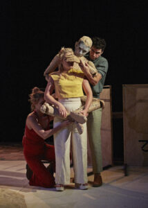 Comment s’inscrit l’idée de hiérarchie entre les personnages sur le plateau ? Quels sont les jeux de pouvoir de la marionnette sur le marionnettiste, de l’acteur sur la marionnette ? Et surtout, comment ces rôles et les points de forces peuvent-ils se renverser d’un coup par une intervention extérieure ?
